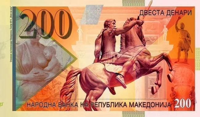 Συγκεκριμένα, οι Σκοπιανοί τύπωσαν νέο χαρτονόμισμα με τον Μέγα Αλέξανδρο καβάλα στον Βουκεφάλα. Το χαρτονόμισμα είναι των 200 δηναρίων δηλαδή 3,5 ευρώ περίπου.