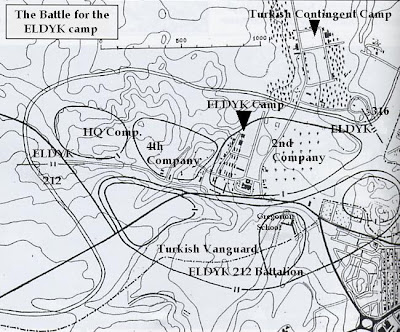 Μέσα στο στρατόπεδο της ΕΛ.ΔΥ.Κ. βρίσκονταν ο 2ος Λόχος του 1ουΤ.Π., με Διοικητή τον Υπολοχαγό Ηλία Κωνσταντούλα, ο 4ος Λόχος του 2ου Τ.Π., με Διοικητή τον Κύπριο Λοχαγό Λούη Ιωαννίδη, ο Λόχος Διοικήσεως της ΕΛ.ΔΥ.Κ. με Διοικητή τον Ταγματάρχη Σπυρίδωνα Δελλή, και μια διμοιρία όλμων με Διοικητή τον Υπολοχαγό Στέφανο Πίο. Διοικητής και των τριών Λόχων ήταν ο Υποδιοικητής της ΕΛ.ΔΥ.Κ., Αντισυνταγματάρχης Παναγιώτης Σταυρόπουλος.