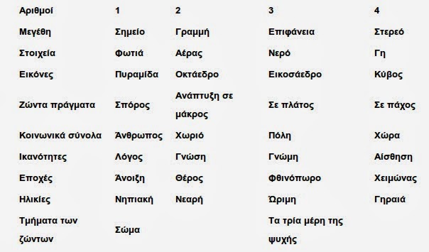 Έτσι έφθασαν στο σύμβολο της Τετρακτύος. Η Τετρακτύς έγινε έπειτα το πρότυπο για τον Κόσμο και την ανθρώπινη ψυχή.